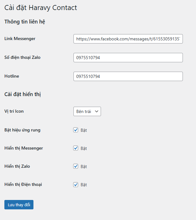 Haravy Contact – Plugin thêm nút Messenger, Zalo và Gọi điện cho WordPress