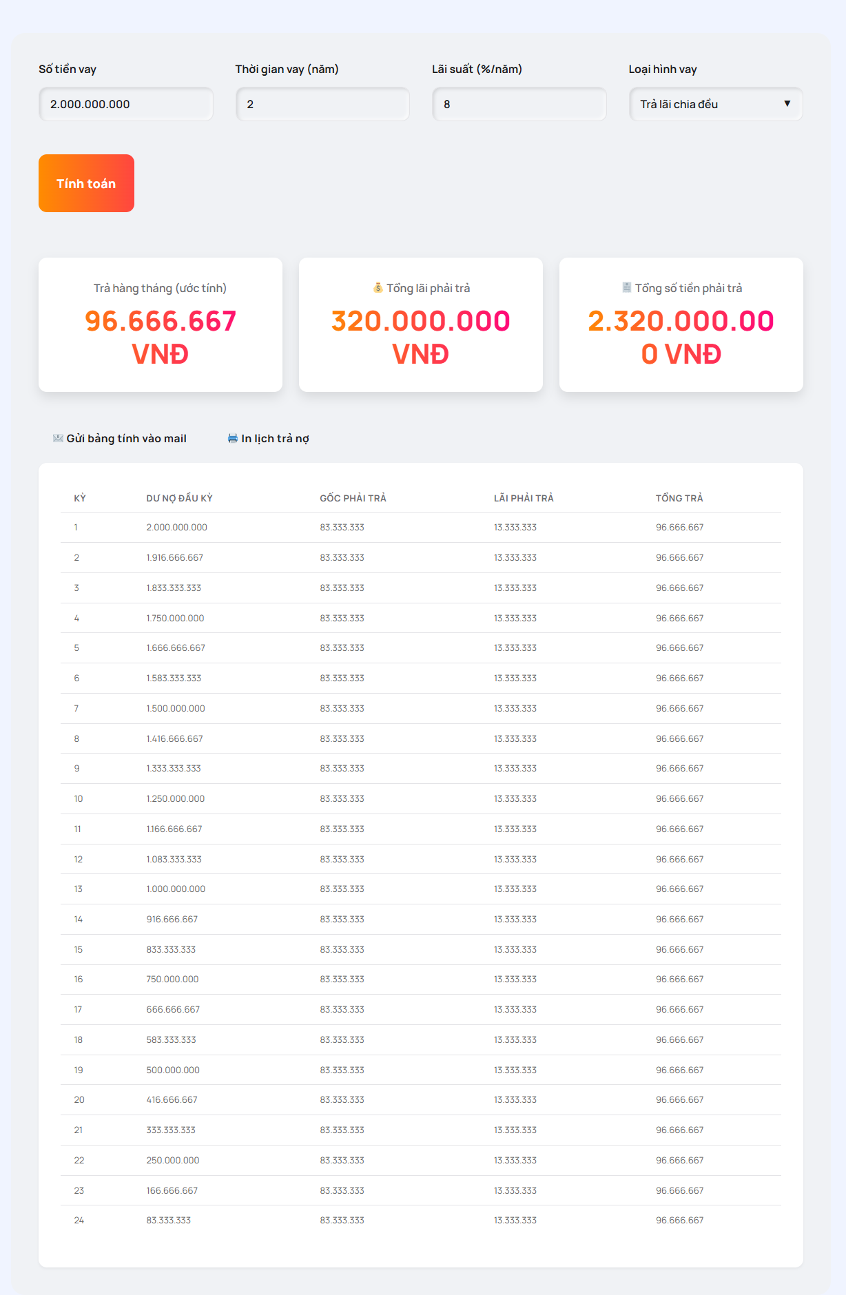 Tính toán theo hình thức “Trả lãi chia đều”