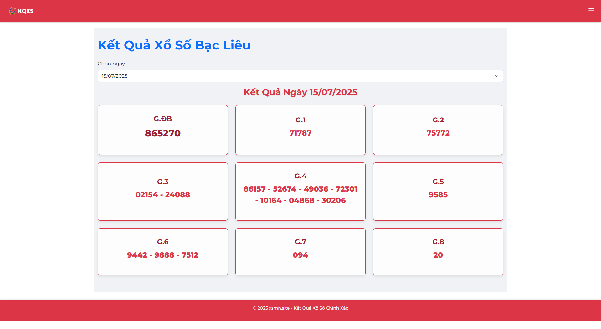 Không cần giao diện quản trị, chỉ hiển thị kết quả xổ số dưới dạng bảng HTML + CSS đơn giản.